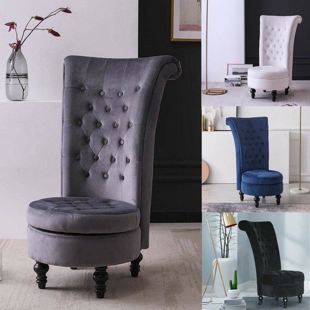 High Back Occasional Accent Armchairs Sofa Velvet Studded Design Tub Chairs Grey Ebay