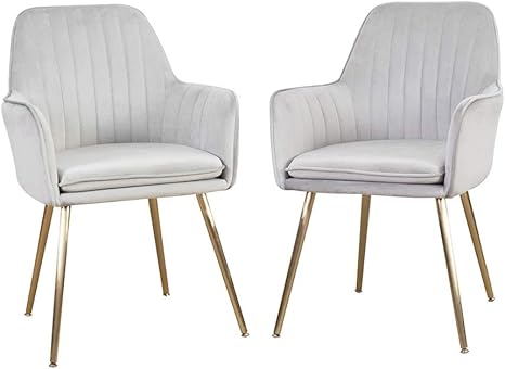 Amazon Com Dmf Furniture Modern Velvet Accent Chair Set Of 2 High Back Elegant Dinning Chairs With Arms In Living Guest Room Grey Chairs