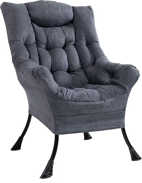 Amazon Com Superrella Modern Soft Accent Chair Living Room Upholstered Single Armchair High Back Lazy Sofa Cool Grey Kitchen Dining