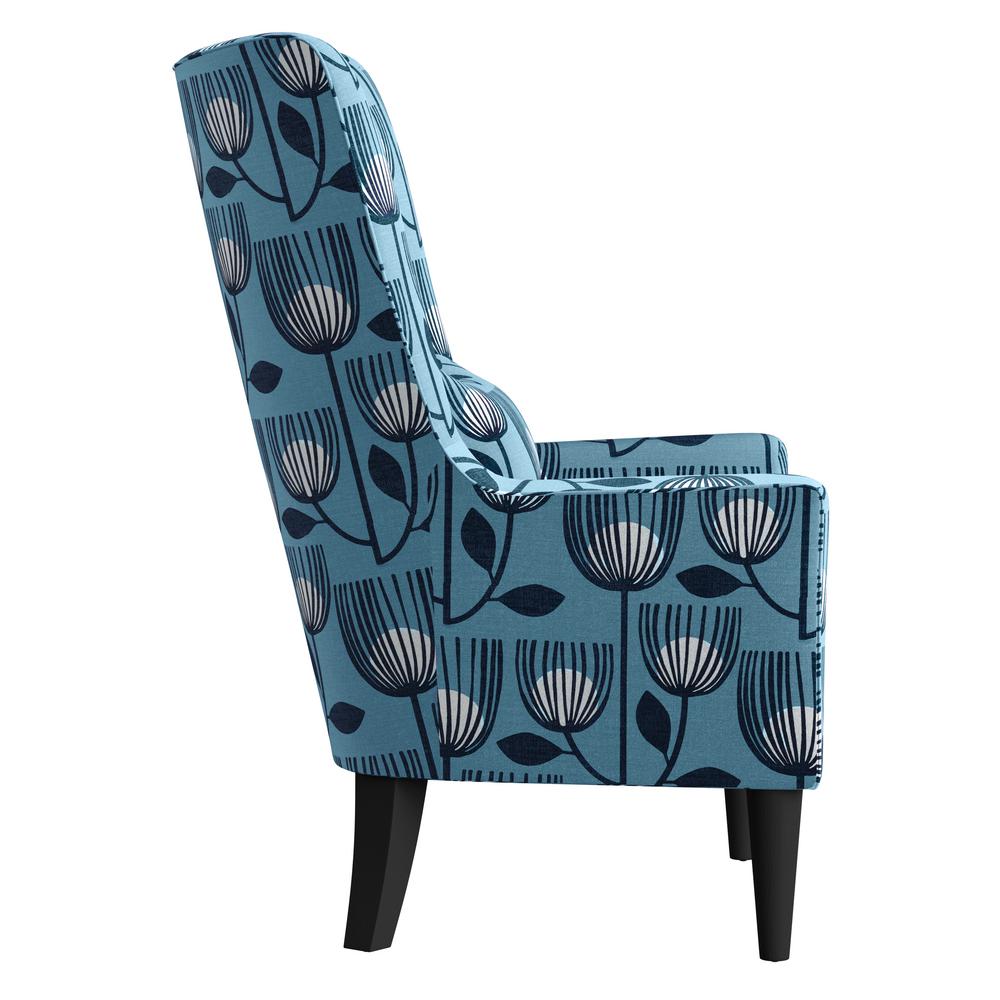 Handy Living Angelina Navy Blue Modern Tulip Print Shelter High Back Wing Chair A159678 The Home Depot