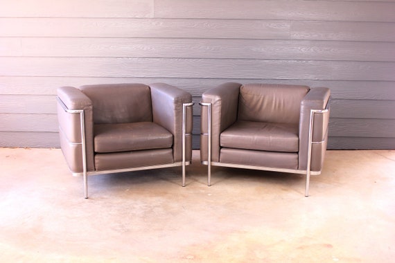 Vintage Jack Cartwright Pair Grey Leather Chairs Le Corbuiser Etsy