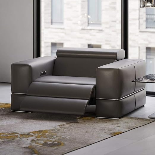 Amazon Com Zuri Furniture Modern Luxor Reclining Chair With Power Headrests Slate Top Grain Leather Furniture Decor
