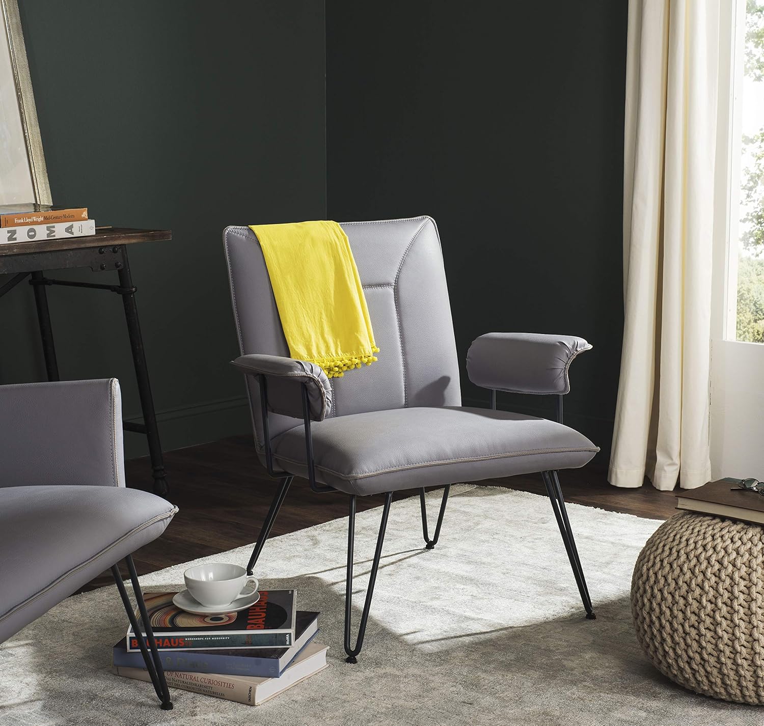 Amazon Com Safavieh Home Collection Johannes Mid Century Modern Grey Arm Chair Furniture Decor