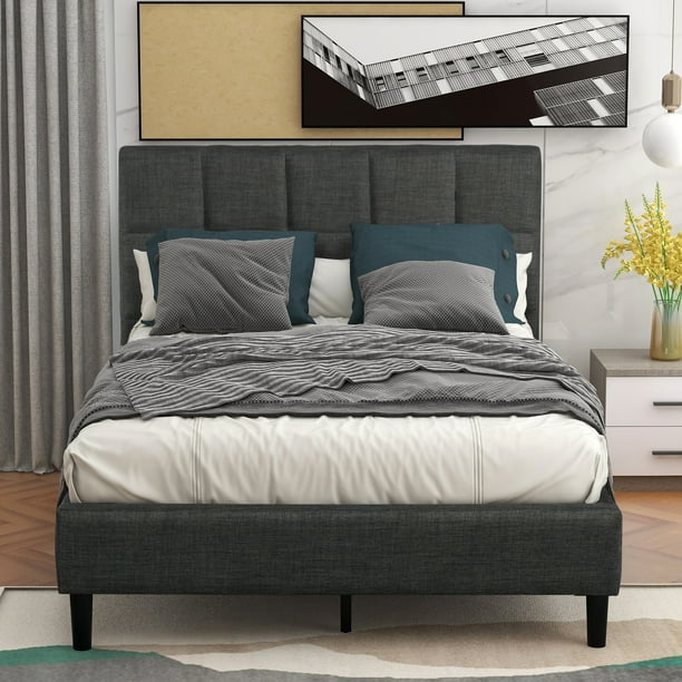 Twin Platform Bed Frame Heavy Duty Wood Twin Bed Frame With Headboard Upholstered Twin Bed Frame No Box Spring Needed Modern Bedroom Furniture Twin Bed Frames For Kids Adults Gray W11843 Walmart Com