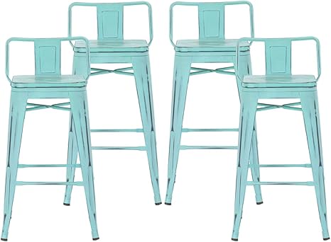 Amazon Com Distressed Bar Stools Set Of 4 Counter Height Stools With Backrests Metal Barstools For Modern Kitchen 30 Inch Green Blue Kitchen Dining