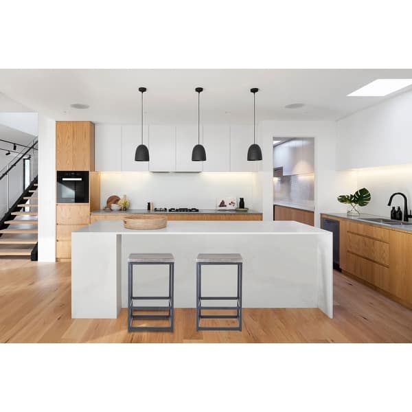 The clean smooth white surfaces of this modern kitchen design are offset by the dark amber butterfly style light fixtures. Kitchen dining seating. Complete your kitchen island in modern farmhouse style with the help from these bar stools.