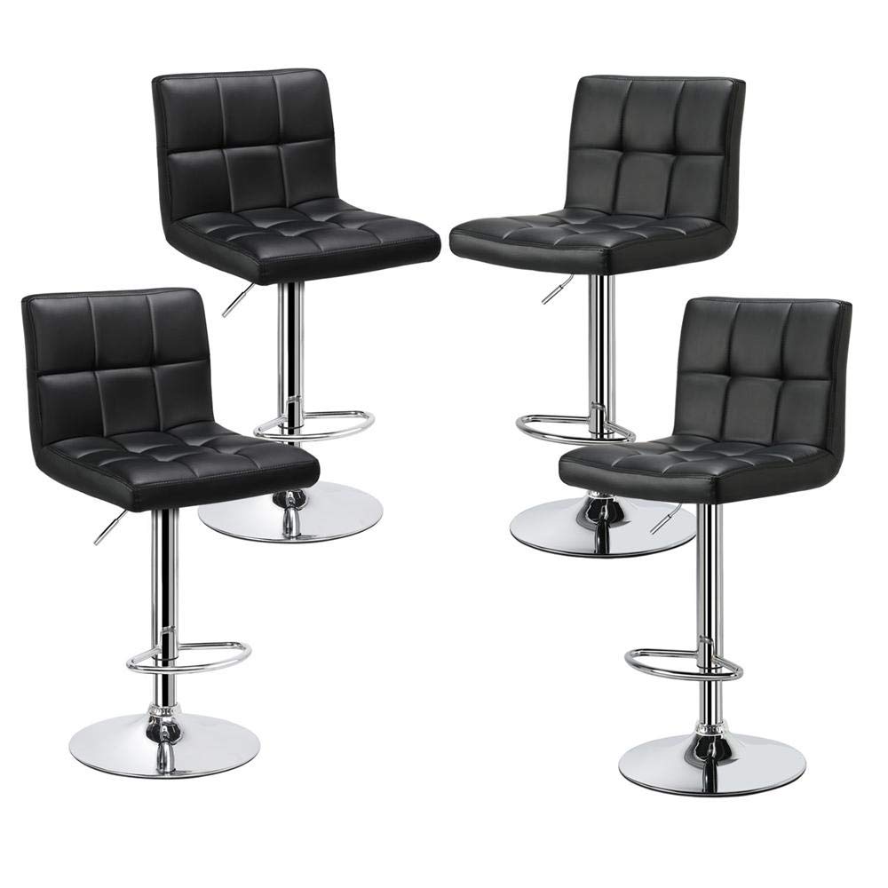 Yaheetech Bar Stools Set Of 4 Modern Adjustable Kitchen Island Chairs Counter Height Barstools Swivel Pu Leather Chair Black 30 Inches X Large Base And Seat Amazon In Home Kitchen