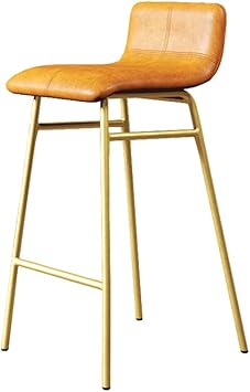 Amazon Com Bar Stool Iron Pu Leather Art Bar Chair Home Modern High Stool Leisure Cafe Front High Chair Color Yellow Size Golden Legs Furniture Decor