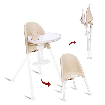 Amazon Com Funny Supply 3 In 1 Cute Folding High Chair Perfect Modern Space Saving Highchair With Detachable Double Tray 3 Point Harness Cream Color Baby
