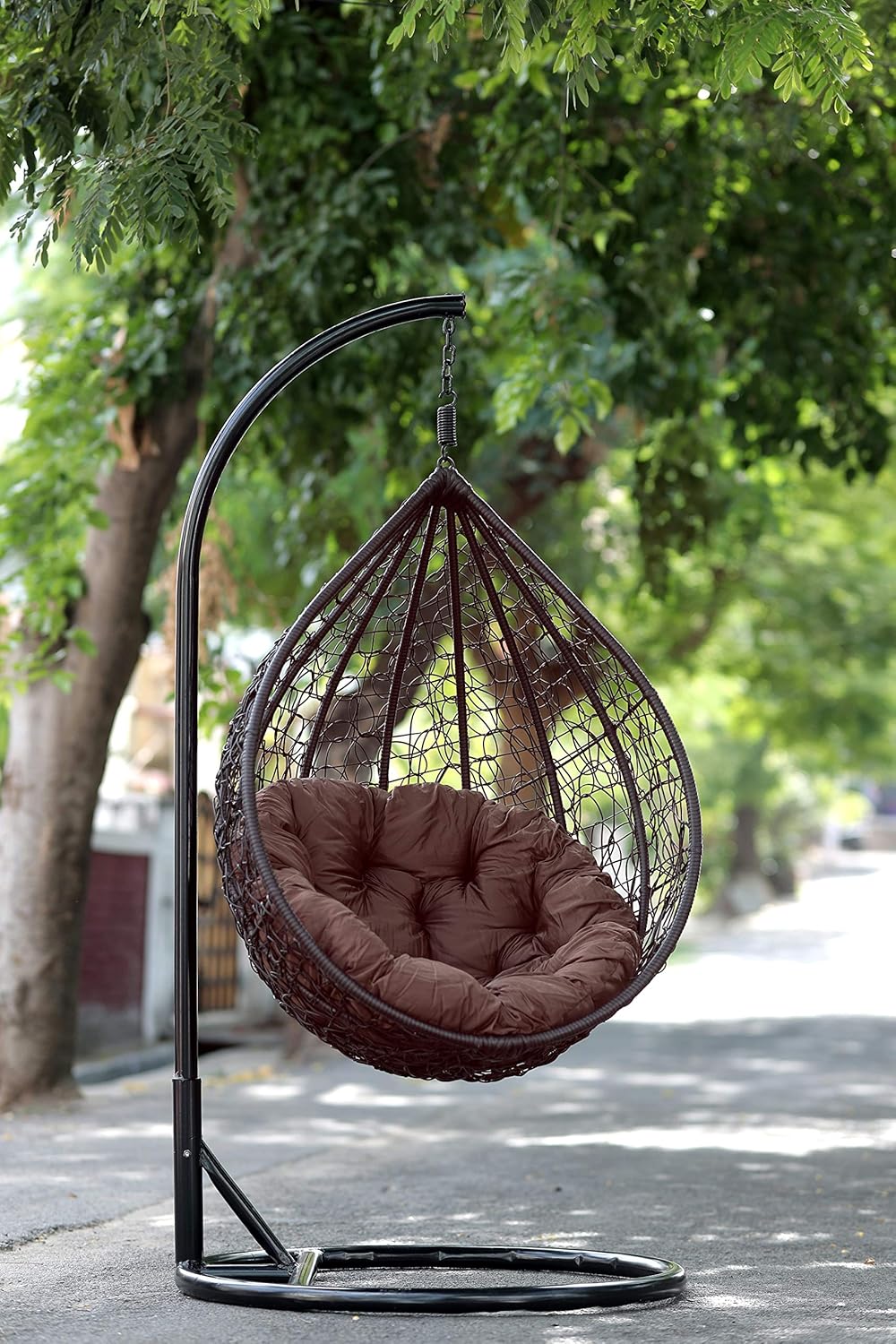 Hanging Swing Chair Adult Modern Jhoola Egg Shape Chocolate Brown Color Shizi Interiors